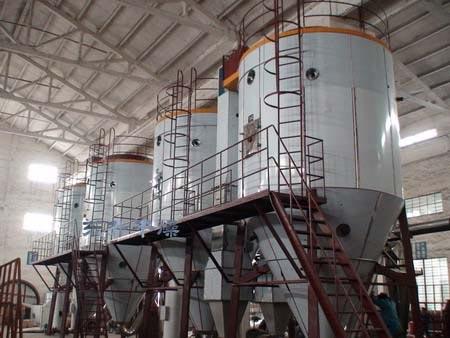 2. ফিল্টারিং এবং গরম করার পরে, বাতাস এয়ার ডিস্ট্রিবিউটরে আসে যা ড্রায়ারের শীর্ষে থাকে, গরম বাতাস সমানভাবে শুকানোর চেম্বারে আসে। উচ্চ-গতির সেন্ট্রিফিউগাল অ্যাটোমাইজারের মাধ্যমে উপাদান তরল, যা টাওয়ার বডির উপরে থাকে, (ঘূর্ণায়মান) একটি খুব সূক্ষ্ম কুয়াশা তরল পুঁতিতে স্প্রে করে, গরম বাতাসের সাথে যোগাযোগ করে এবং খুব অল্প সময়ের মধ্যে তৈরি পণ্য হিসাবে শুকিয়ে যেতে পারে। ড্রাইং টাওয়ার এবং সাইক্লোন সেপারেটরের নীচ থেকে ফিনিশড পণ্য ক্রমাগত আউটপুট করে, এক্সস্ট ফ্যান তৈরি করে বাতাস খালি করে।